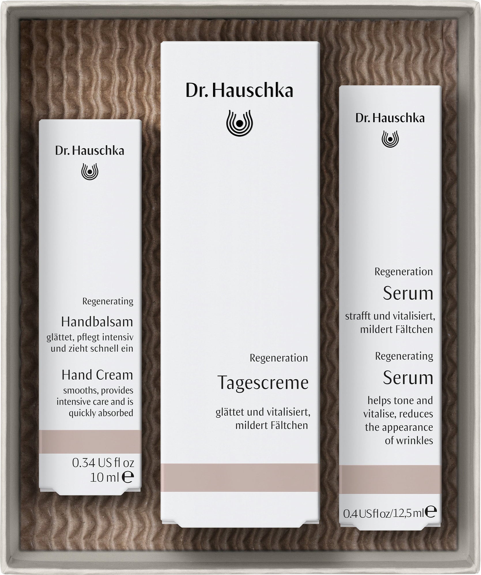 Dieses Set schenkt reifer Haut besondere Strahlkraft. Es besteht aus drei Produkten der Regeneration-Pflegelinie: Tagescreme, Serum sowie Handbalsam. Perfekt zum Verschenken oder Selbstverwöhnen!
