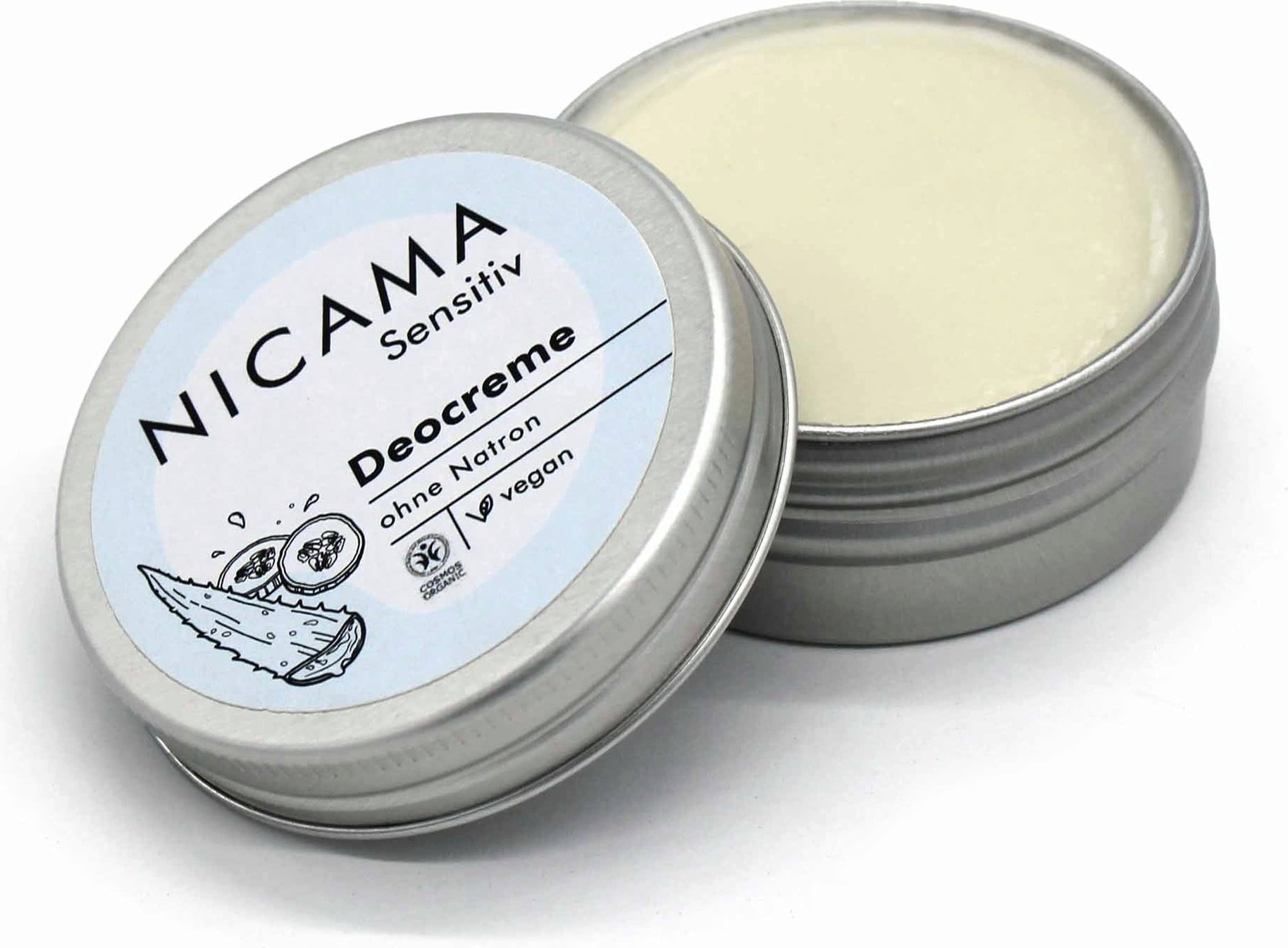 Die Deocreme Sensitiv wurde für empfindliche Hauttypen formuliert und kommt gänzlich ohne Natron, Aluminiumsalze oder ätherische Öle aus. Ihre Rezeptur ist minimalistisch sowie hautmild und bietet erfrischende Noten von Gurke und Aloe Vera.
