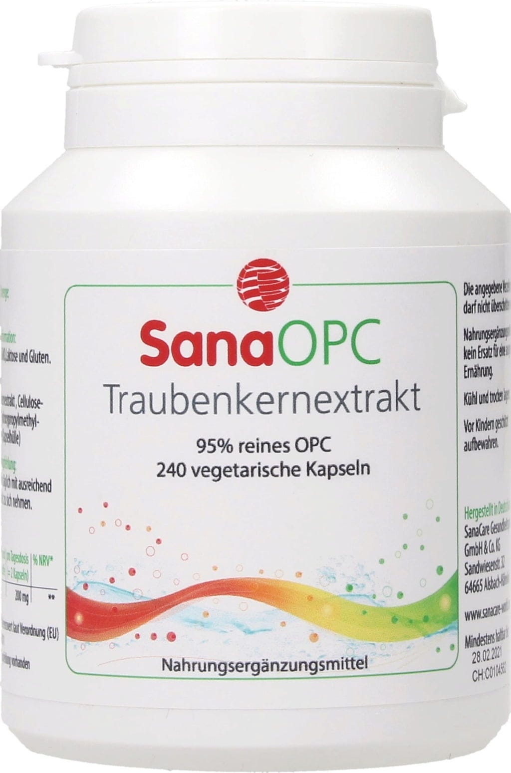 Sana OPC ist ein zu 95% reines Traubenkernextrakt mit 100 mg Inhalt pro Kapsel.